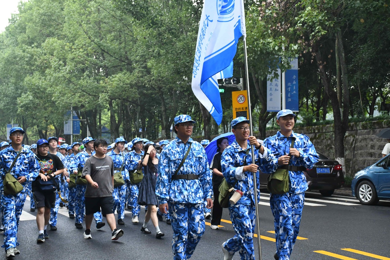 军训连沿指定路线行进,全程约5公里。途中旗帜飘扬,新生们精神饱满,步伐整齐,嘹亮的口号声和歌声此起彼伏。此次活动不仅是军训的重要组成部分,更让新生们在实践中磨炼了意志、培养了坚韧品质。