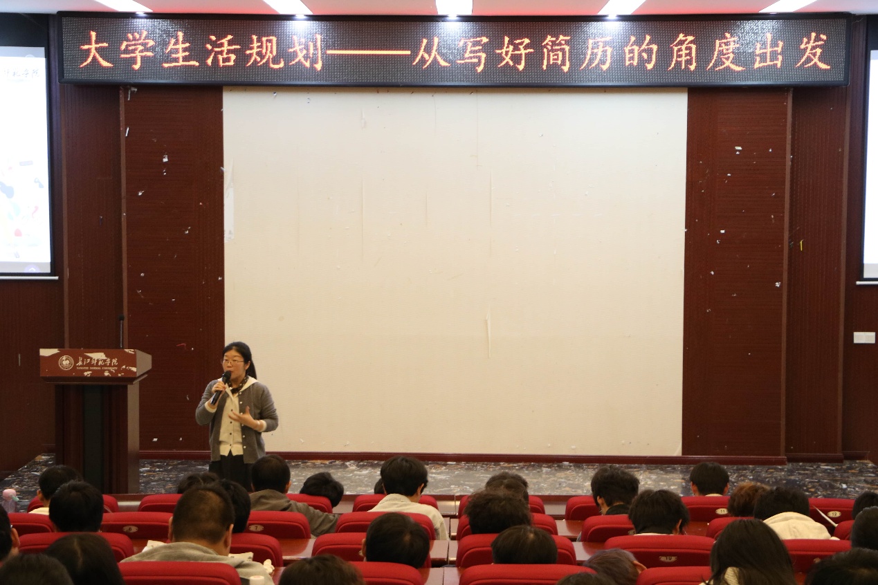 10月27日,学院举办“大学生活规划——从写好简历的角度出发”讲座,就业指导与服务中心主任谭帮换主讲,2025级同学参与。