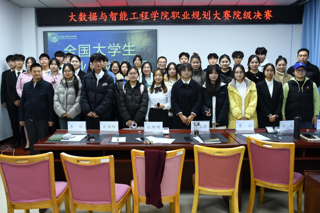 1118日,学院举办职业规划大赛决赛,学院党委副书记朱飞镝、专业教师瞿白、专业教师甘毅与各年级辅导员担任评委。