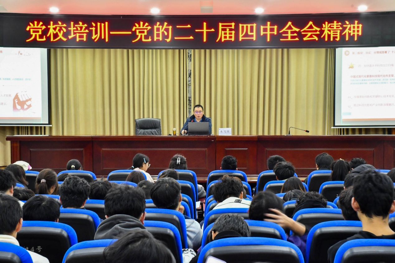 11月16日,学院党校培训班举办“党的二十届四中全会精神”主题讲座,党委副书记朱飞镝主讲,全体入党积极分子、预备党员及学生党员参加。