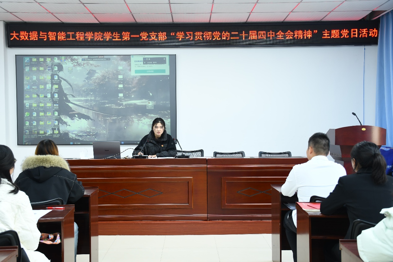 11月25日,学生第一党支部开展“学习贯彻党的二十届四中全会精神”主题党日活动。党支部书记肖佳玲主持会议,支部全体党员参会。
