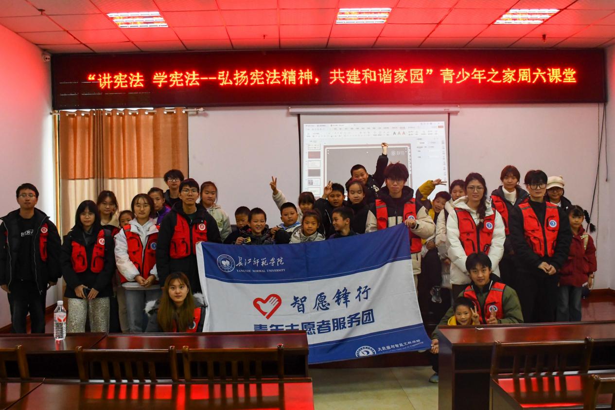 12月6日,学院“智愿锋行”青年志愿者服务团前往涪陵区马鞍街道太乙门社区开展“讲宪法,学宪法——弘扬宪法精神,共建和谐家园”青少年之家周六课堂活动。